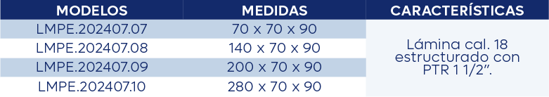 > Cubierta con respaldo en lámina calibre 18. cuenta con refuerzos inferiores del mismo material.